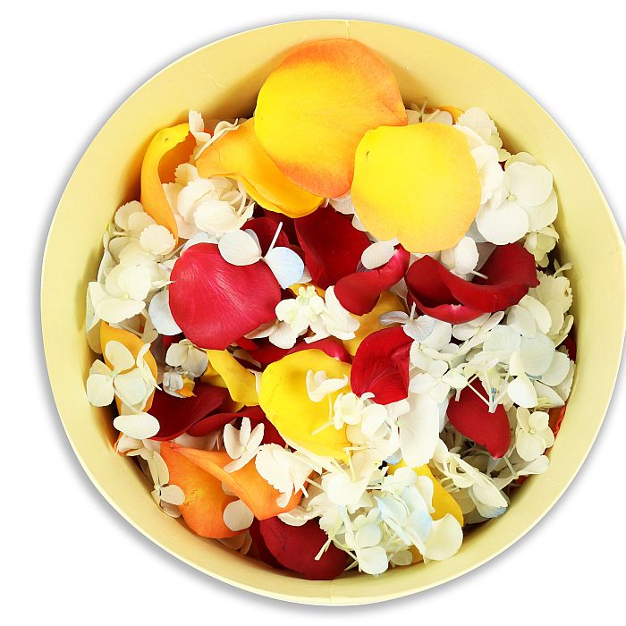Experience the allure and distinctiveness of our luxurious flower arrangement. This bouquet combines vibrant Hydrangea, Rose, and Chrysanthemum petals, artistically designed to captivate and delight.